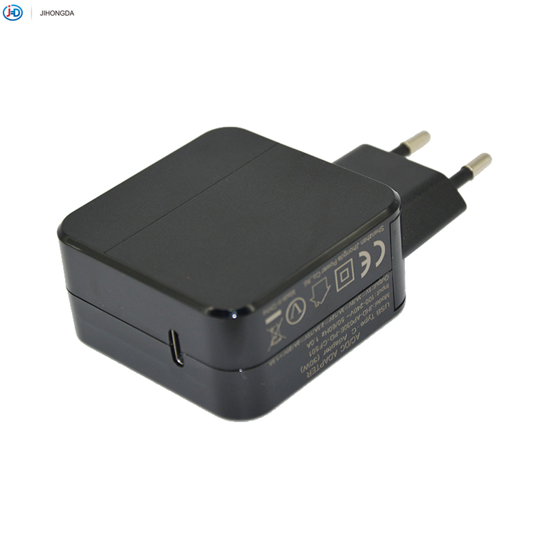 欧规CE认证PD充电器,电源适配器,型号JHD-AP030E-PD-CF501,type-c接口,输出5V/3A,9V/3A,12V/2.5A,15V/2A,20V1.5A;